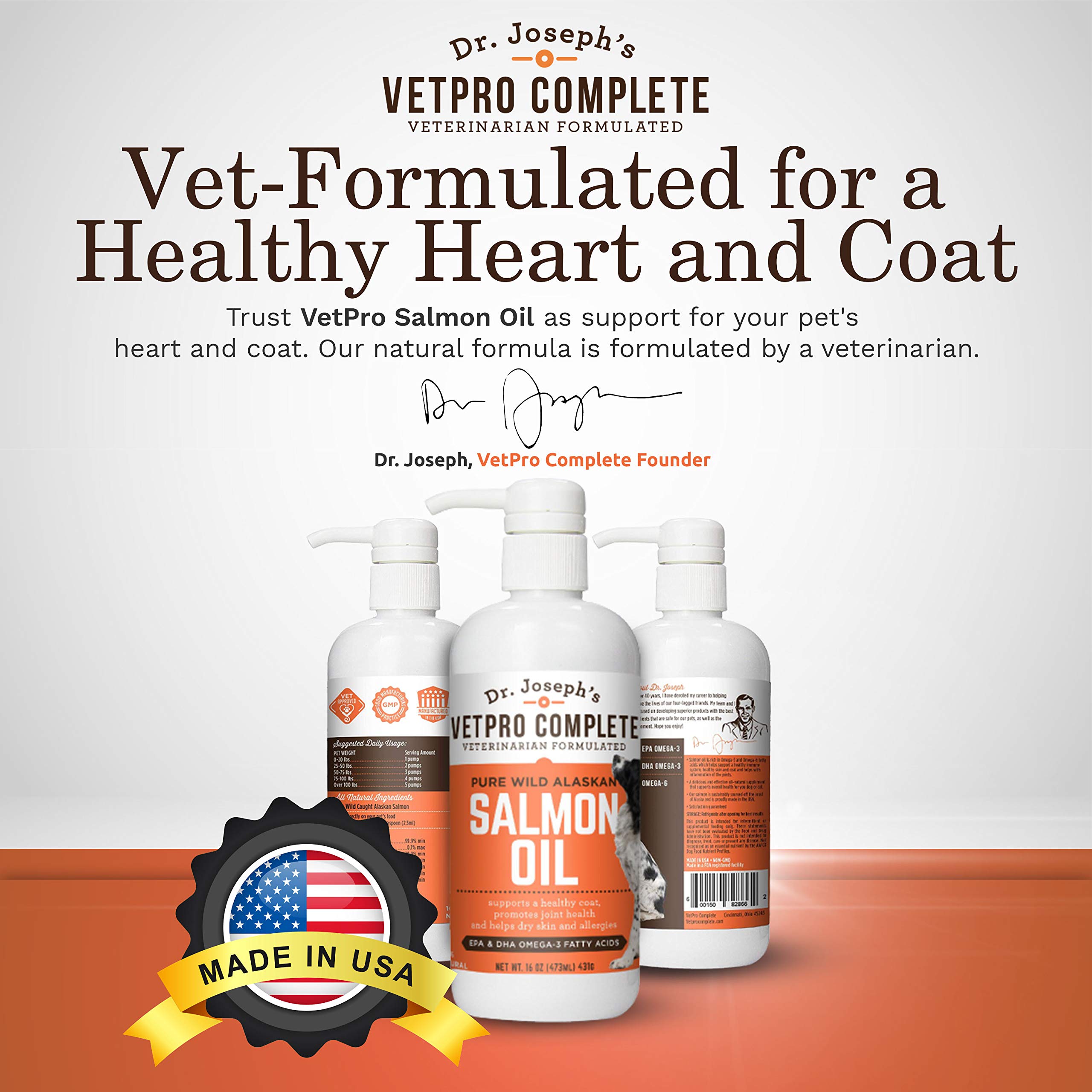 • ALL-NATURAL, MADE IN THE USA, SUSTAINABLY SOURCED – Vet Pro Complete’s unique formula contains only the highest quality Salmon Oil with no chemicals or byproducts. Each bottle is made in the USA, in a Good Manufacturing Practice (GMP) certified process.