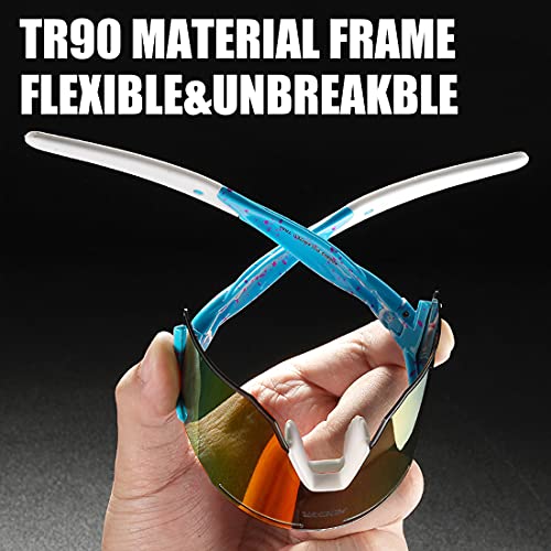 • 【Stress-Resistant TR90 Frame】All frames are made of lightweight and durable TR90 material, even if you wear it for a long time, you will not feel discomfort and tired. This cycling sunglasses are made of lighter materials and can be hung on the waist, making it more convenient to use.